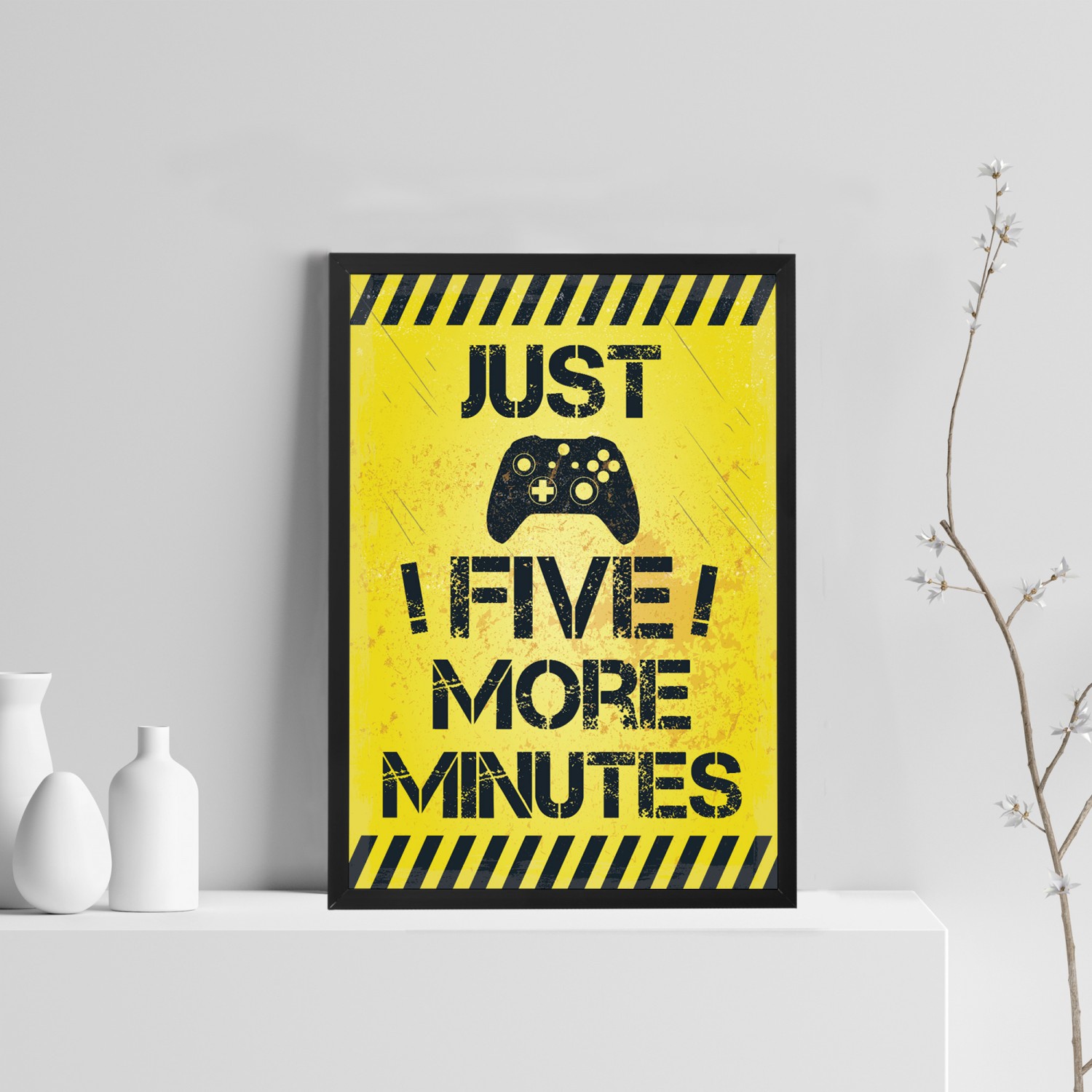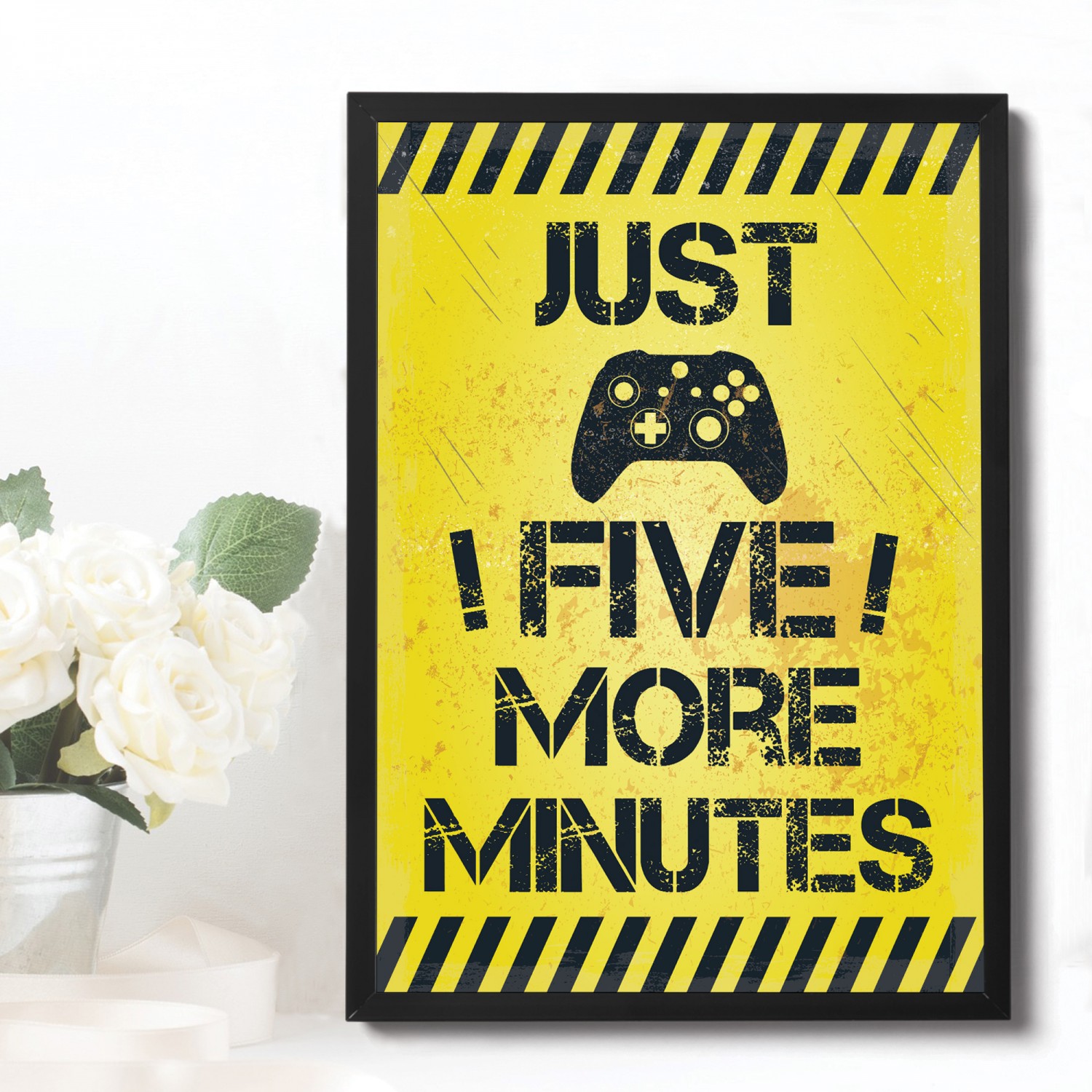 Framed Five Minutes Print For Wall Boys Bedroom Decor Gamer Gift