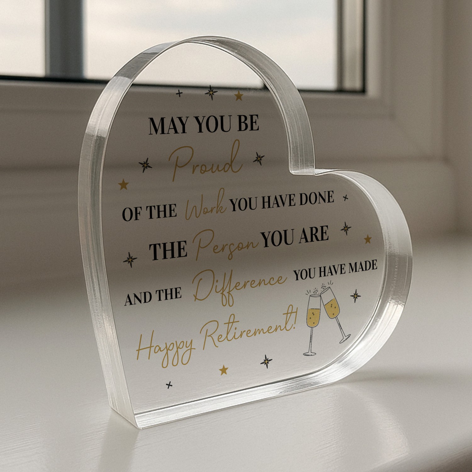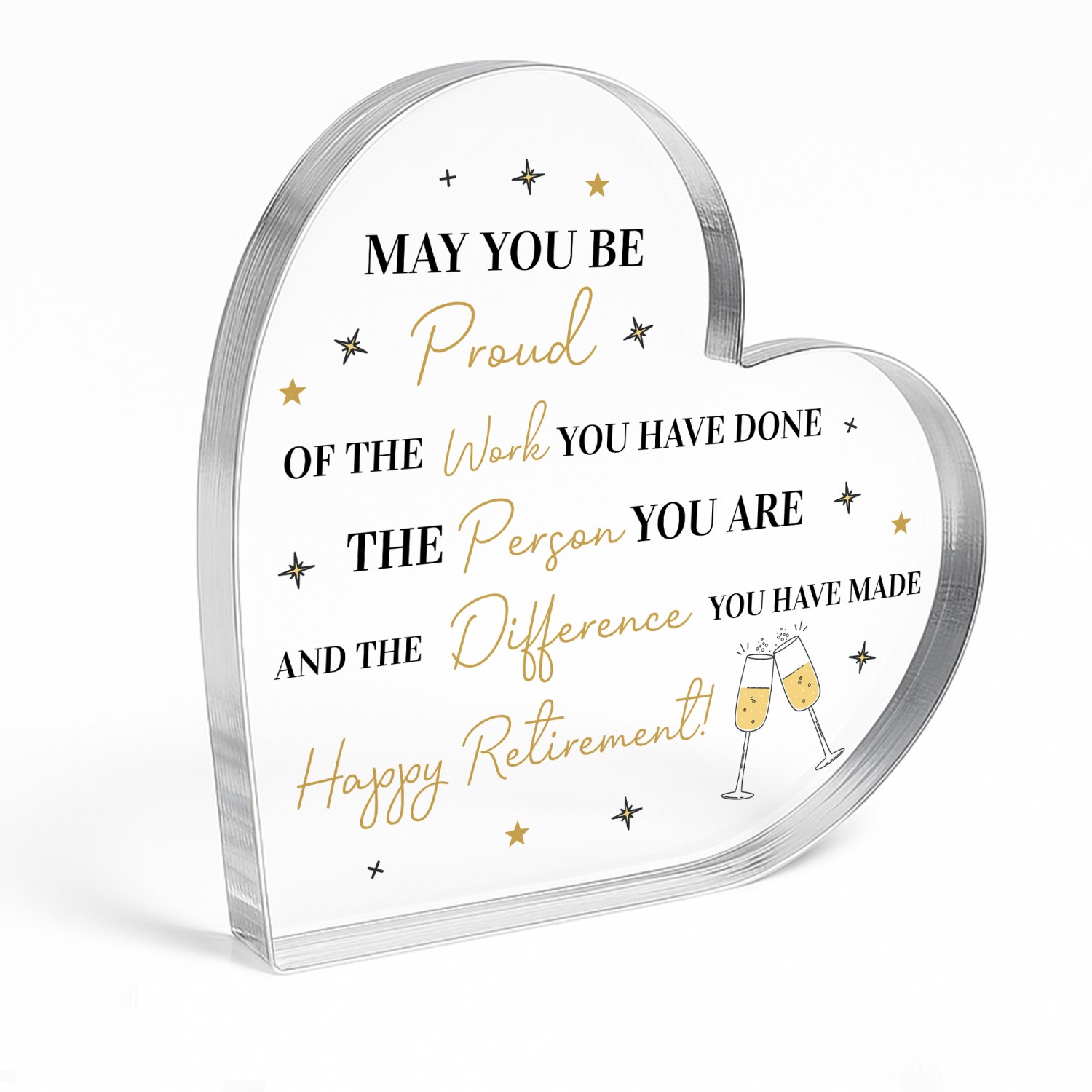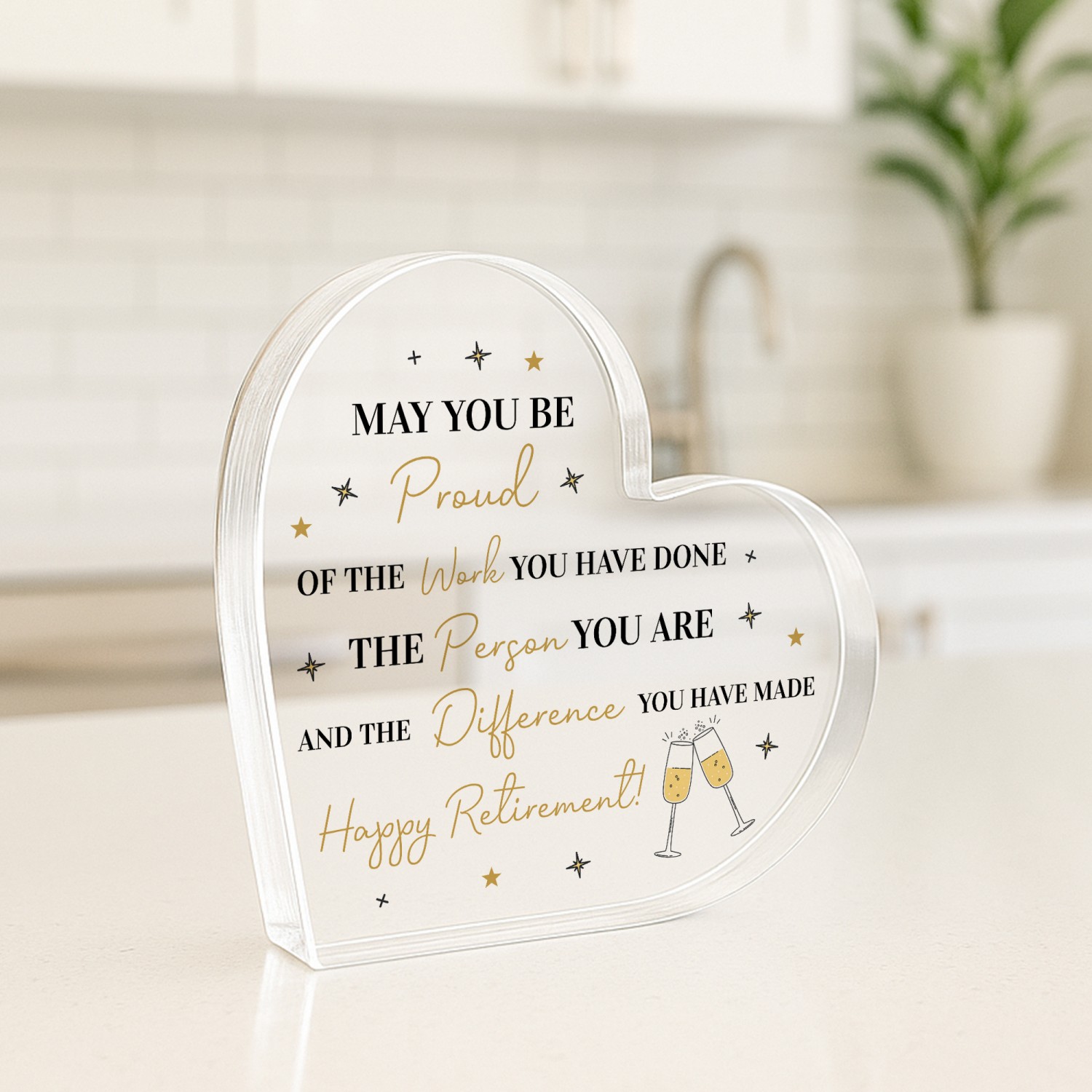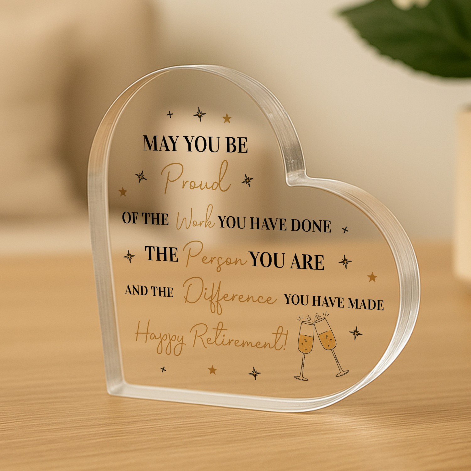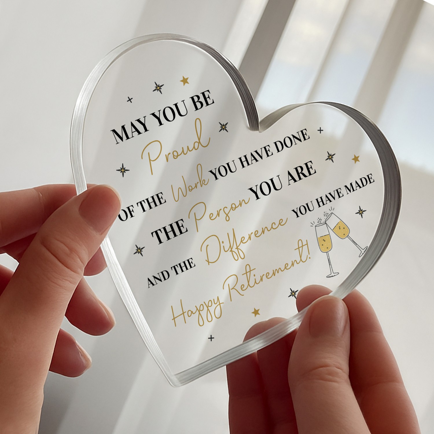 Celebrate a well-earned milestone with our Retirement Heart Acrylic Keepsake Plaque, a beautiful and meaningful way to honour years of dedication, hard work and achievement. Thoughtfully designed as a heartfelt retirement gift for colleagues, friends, teachers, bosses or loved ones, this elegant plaque makes the perfect reminder of the difference someone has made throughout their career.