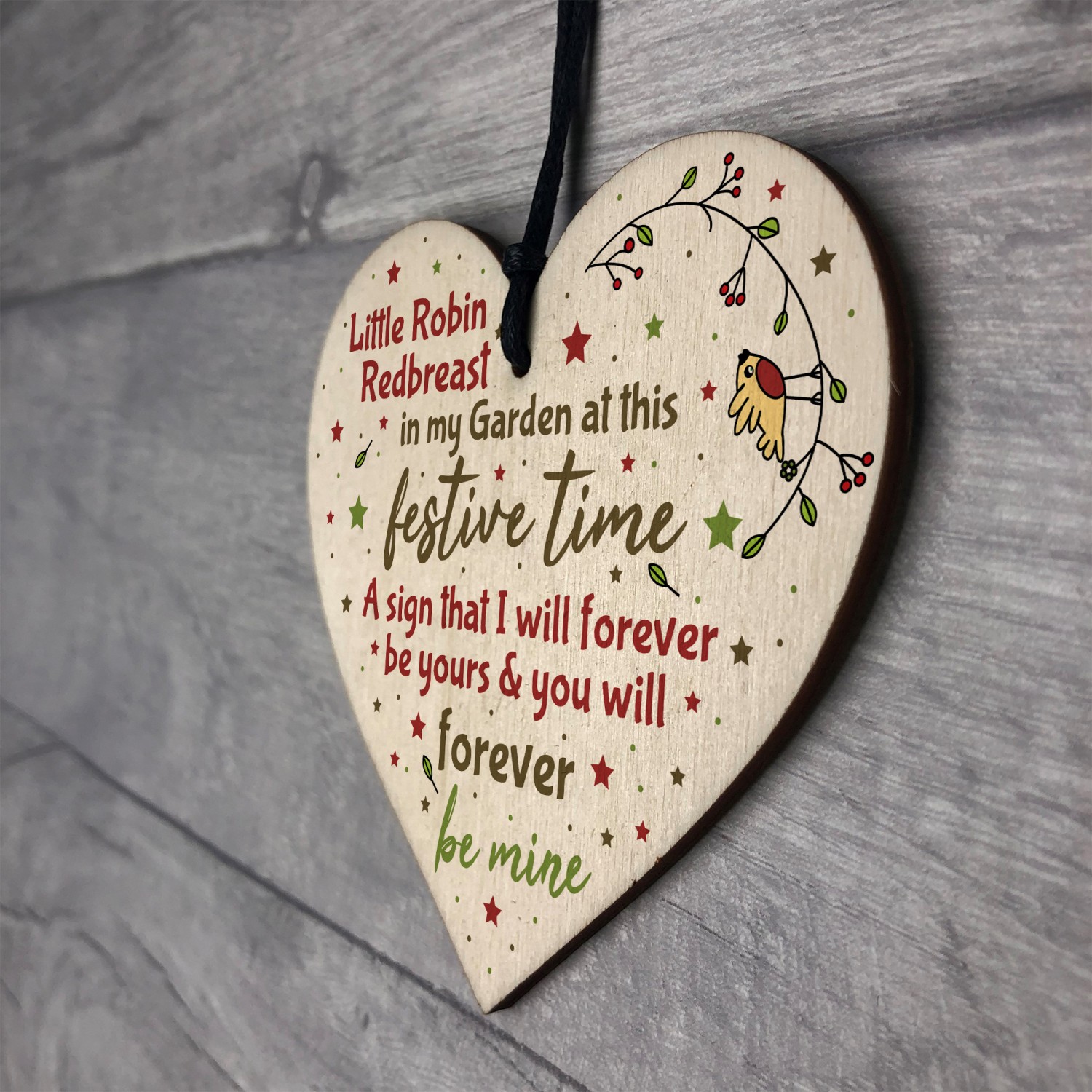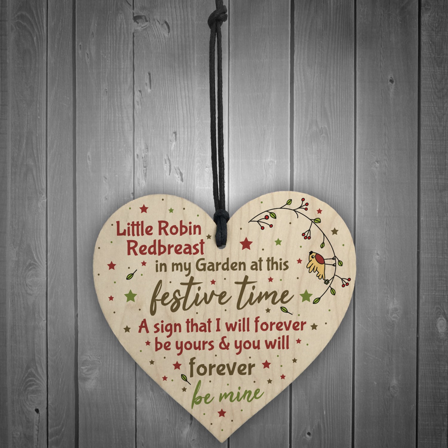 The sign is made from FSC Certified wood, and the design is permanently printed into the wood. The wooden heart is supplied with waxed cotton rope to allow easy hanging and looks great in any room of the house.