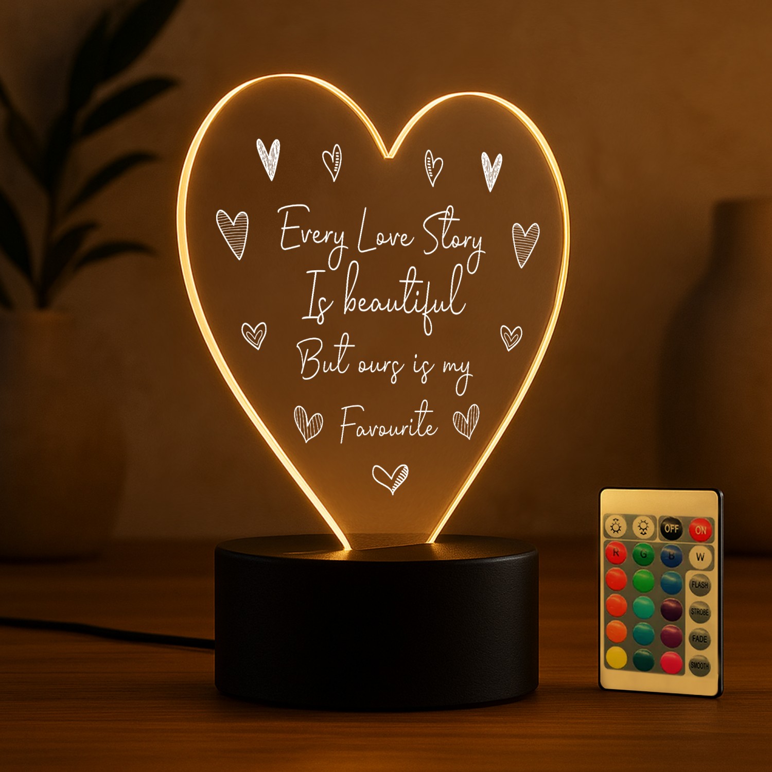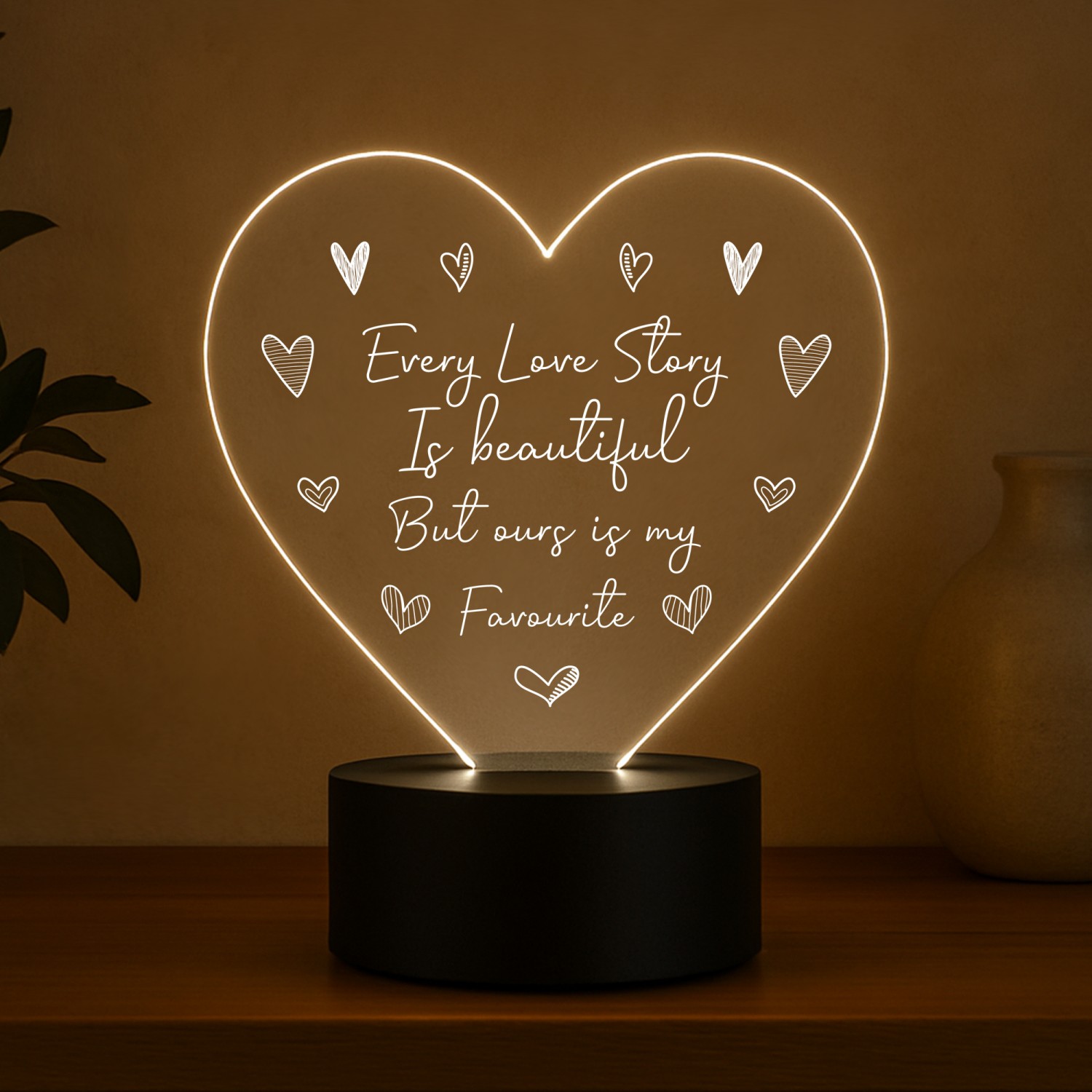 An Awesome LED sign! The light is made from Acrylic and is attached to the LED base. The acrylic creates an Amazing GLOW which illuminates the design, making it a perfect feature in their home as a decorative light. Give this as a gift to your Husband/Wife/Boyfriend/Girlfriend and put a smile their face when they receive this and can put it up in their room! This Novelty Gift makes an amazing Valentines Day Gift or Anniversary gift. Supplied with a LED base, a beautiful keepsake that will be treasured for years to come.