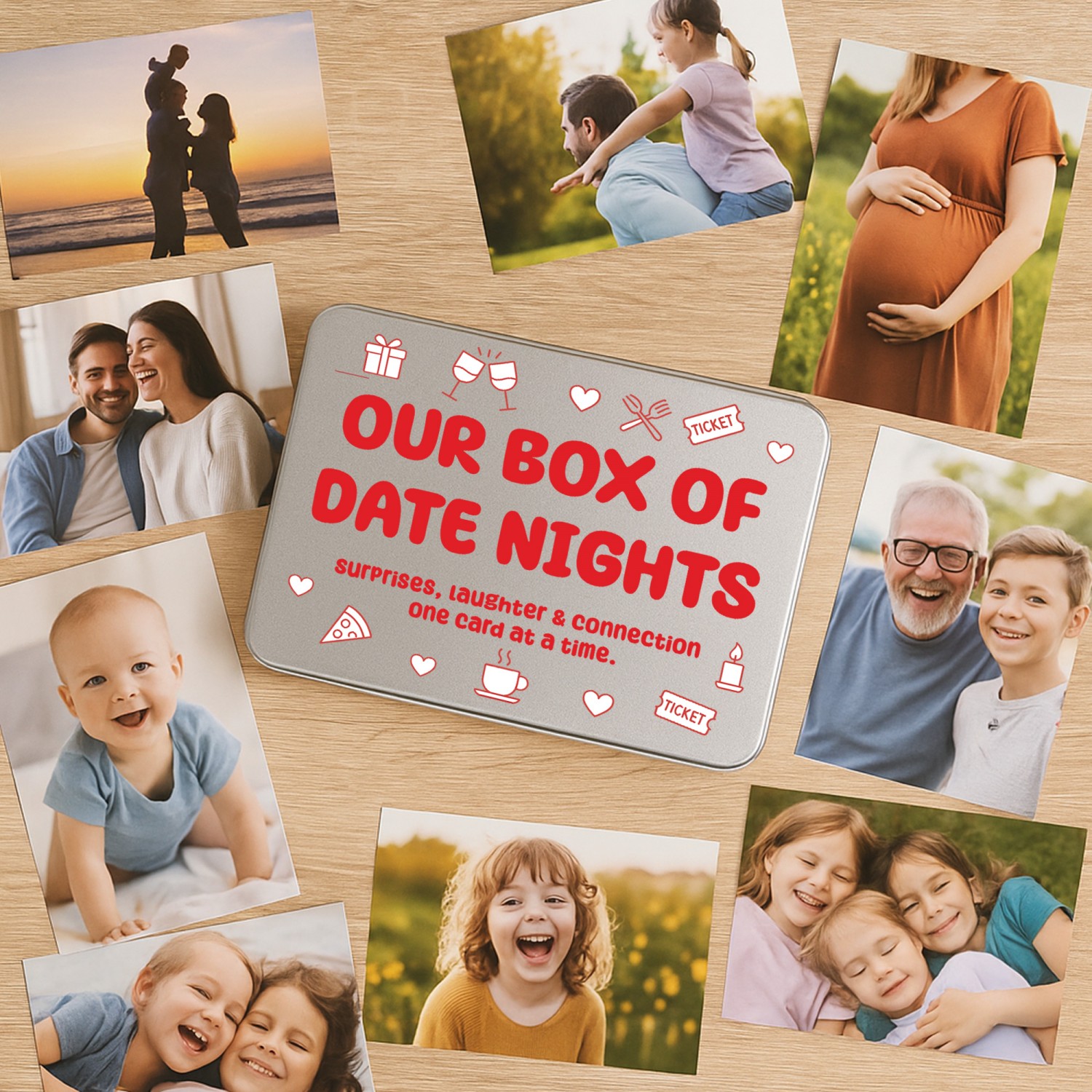 Personalisation is key with our product, allowing you to imprint your chosen photos, names, or dates onto the surface of the tin. Whether it's a cherished family portrait or a significant anniversary, our printing process ensures that your memories are beautifully showcased.