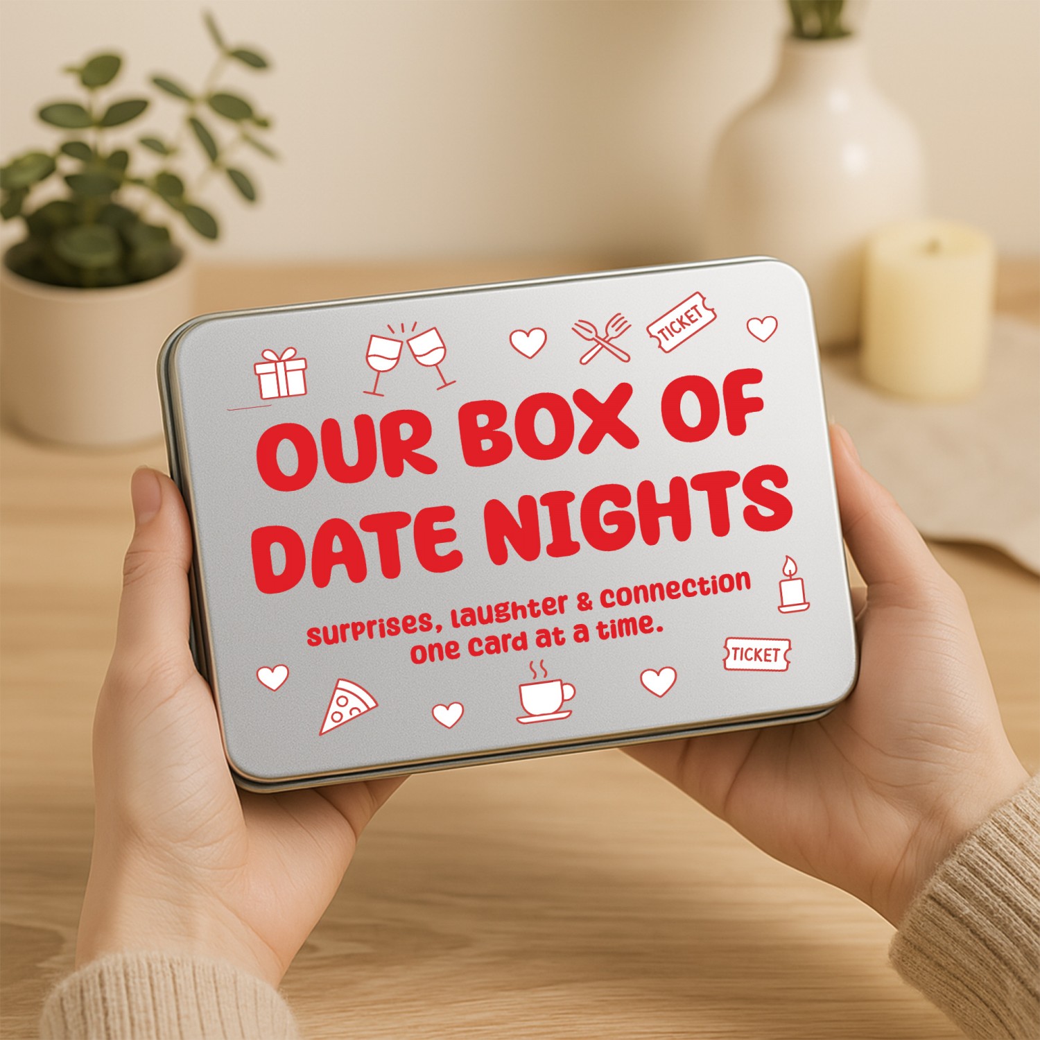 Silver Rectangle Tin - Our Box of Date Nights Red
