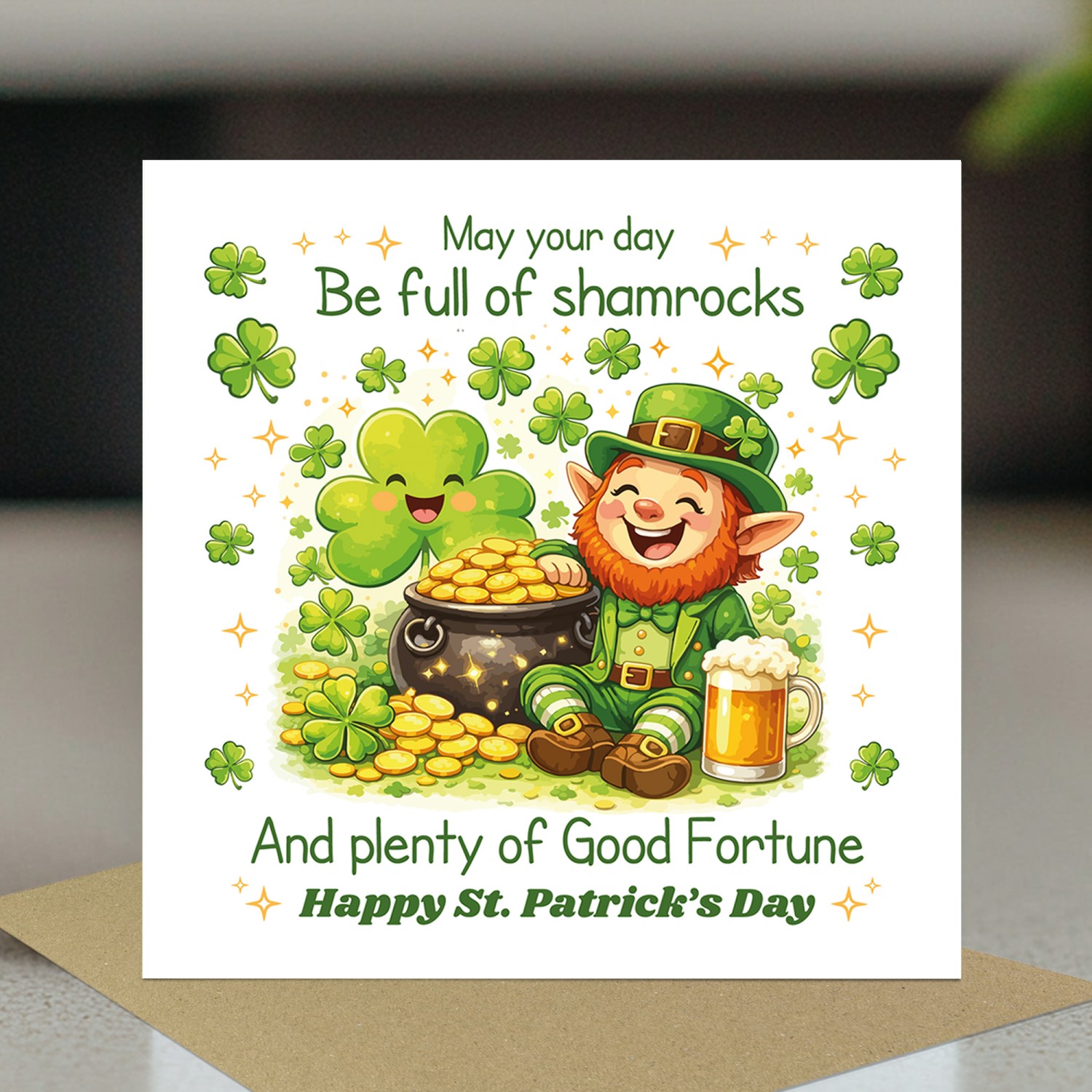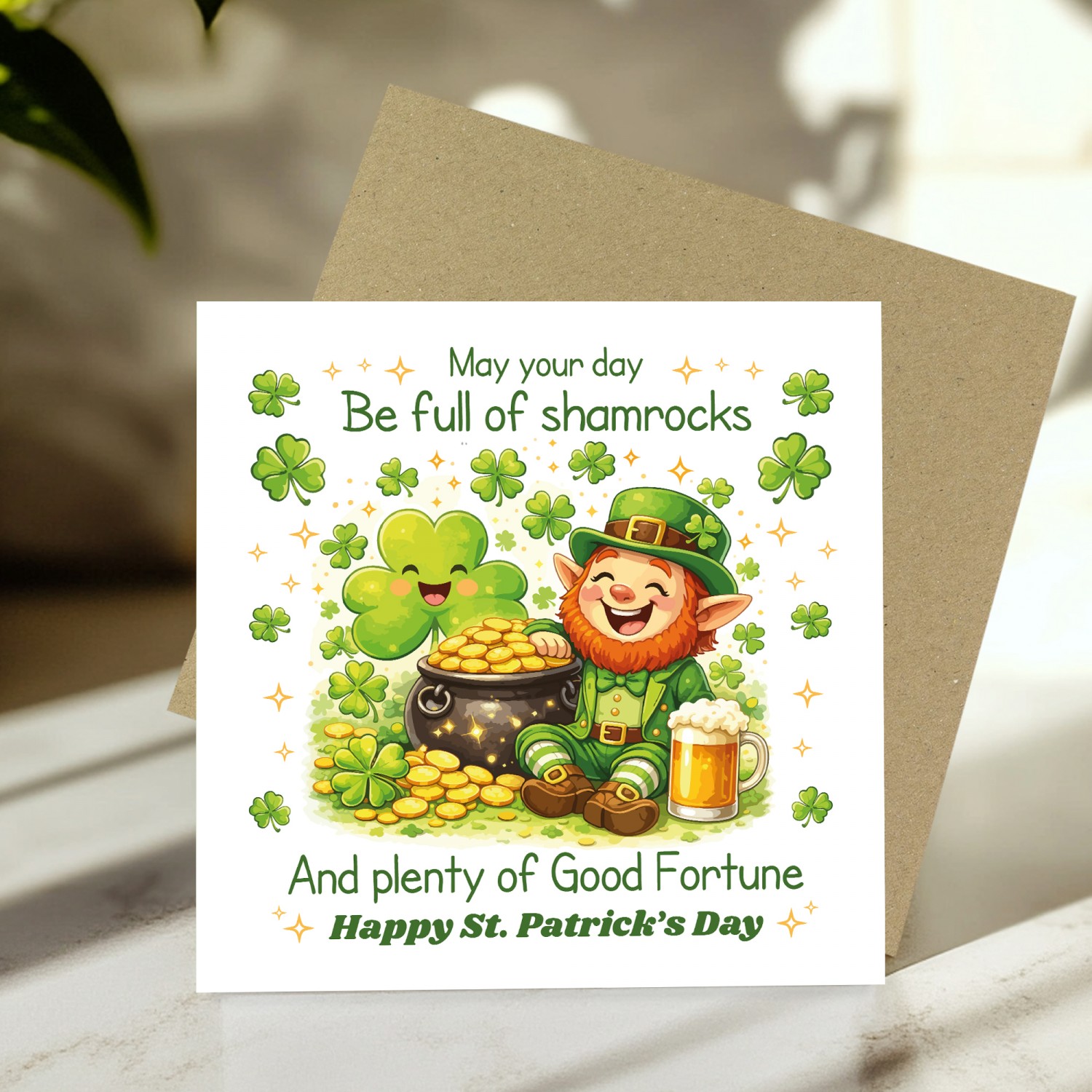 Each card comes complete with a stylish brown kraft envelope, giving it a charming and natural look that pairs perfectly with the playful St Patricks Day design. It is ready to send or hand deliver to someone special.