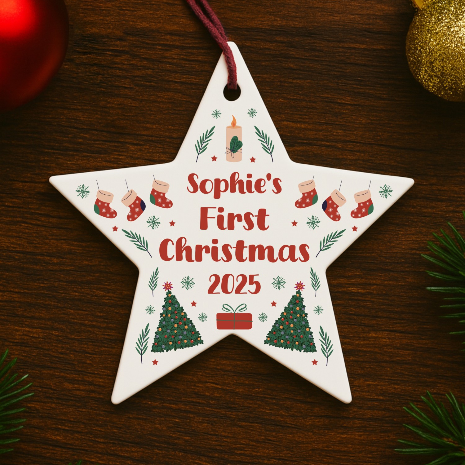 Personalised Baby's First Christmas Bauble Xmas Star Ornament