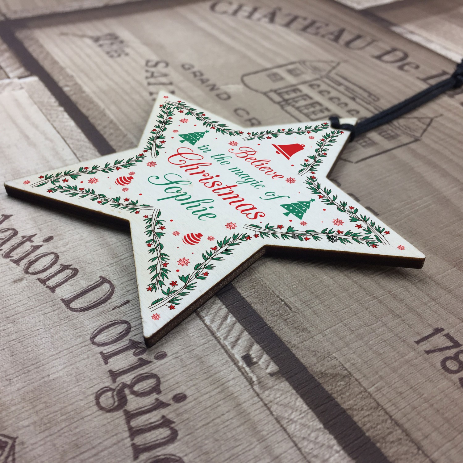 on your Christmas Tree! A gorgeous wooden star plaque