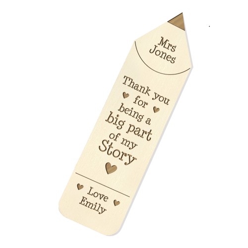 A beautifully engraved wooden bookmark with a special message for a