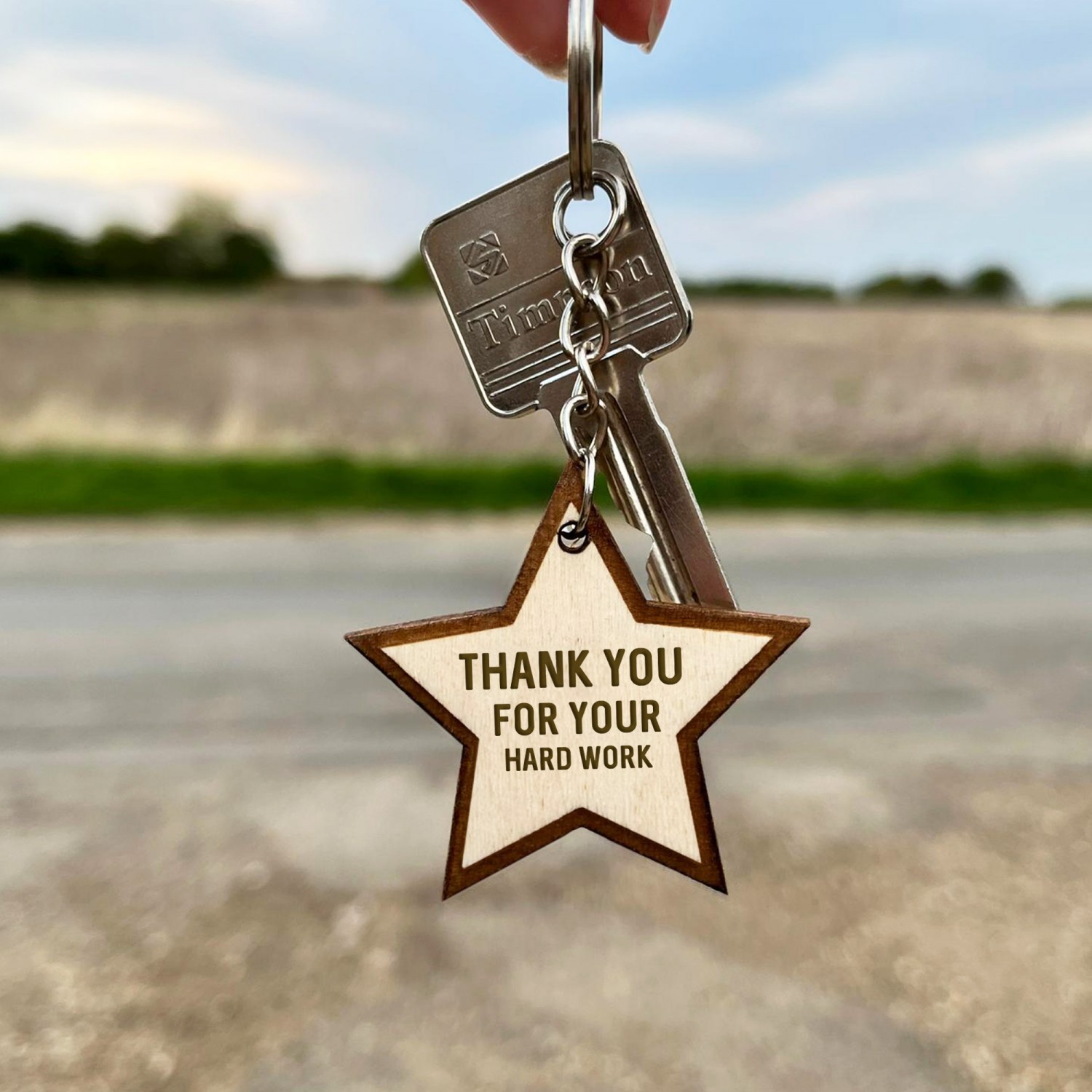 The wooden keyring is made from Wood and the text / design is permanently engraved into the wood.
