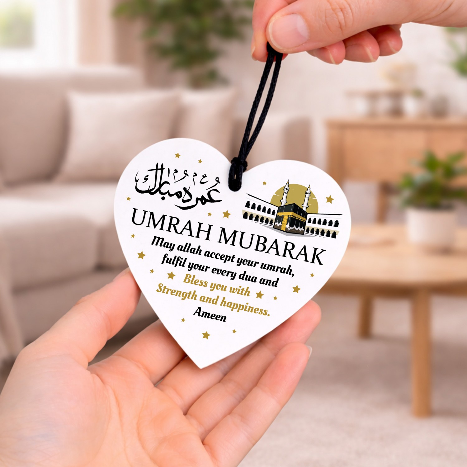 The heart plaque is designed to be hung with a simple black or red string, included with your order, making it easy to display on a wall, hook, or even as part of a decorative arrangement. Whether it's displayed in the living room, bedroom, hallway or office, it adds a meaningful personal touch wherever it's placed.