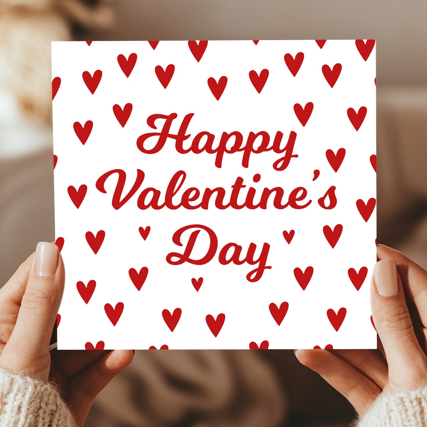 Cute Valentines Card for Her Him, Red Hearts Valentines Day Card