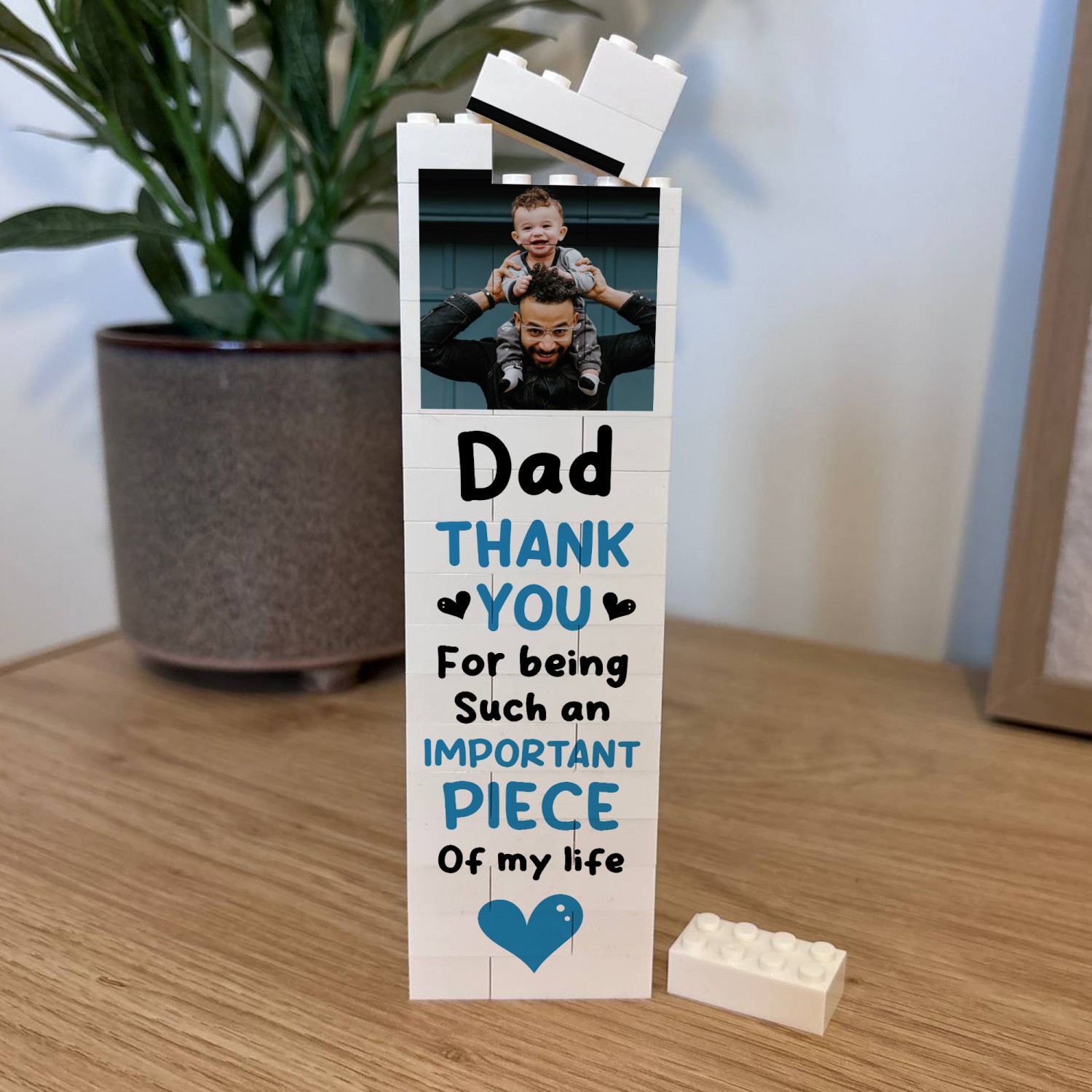 This striking plaque is compact yet impactful, measures 18cm x 5cm and is made up of 36 high-quality, interlocking white blocks in two sizes: some measuring 4cm x 2cm, and others 2cm x 2cm. This freestanding block fits beautifully on a shelf, desk, or mantelpiece, adding character to any space. Its lightweight which makes it easy to rearrange and move, so you can switch things up whenever you like. Not only does this display preserve your memories, but it also adds a playful, creative touch to your decor. The interlocking design allows you to build and dismantle the block as many times as you want.