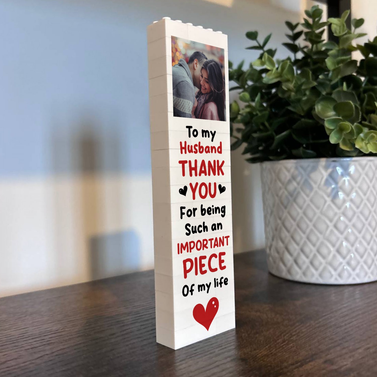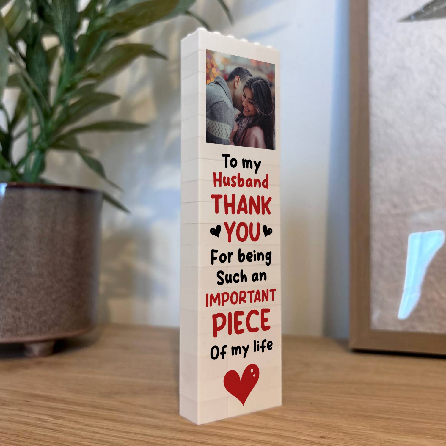 This block is perfect for anyone who loves personalised keepsakes. Whether it's a heartwarming gift for a loved one or a unique way to brighten up your workspace, this personalised block is perfect for Valentines Day this year, it's a present that's guaranteed to leave a lasting impression. Each block can be printed with your favourite photos, alongside a beautiful message. Upload your photo / message and let us create a one-of-a-kind gift that's truly yours.