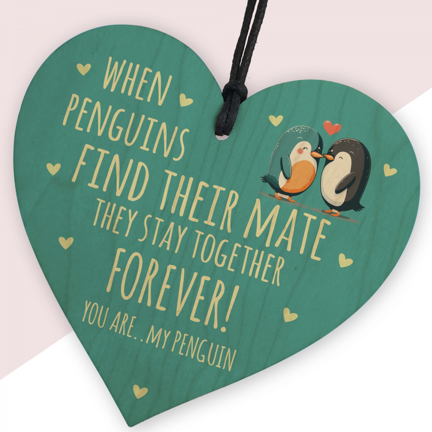 Penguin Gift For Valentines Day or Anniversary Wood Heart Plaque