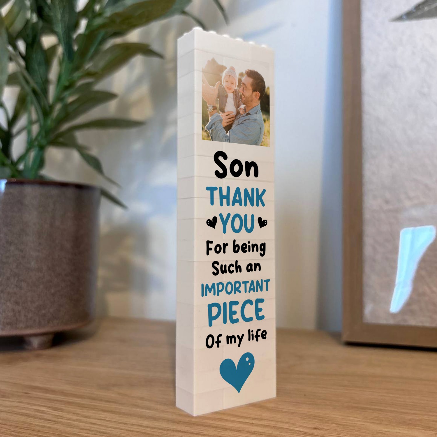 This striking plaque is compact yet impactful, measures 18cm x 5cm and is made up of 36 high-quality, interlocking white blocks in two sizes: some measuring 4cm x 2cm, and others 2cm x 2cm. This freestanding block fits beautifully on a shelf, desk, or mantelpiece, adding character to any space. Its lightweight which makes it easy to rearrange and move, so you can switch things up whenever you like. Not only does this display preserve your memories, but it also adds a playful, creative touch to your decor. The interlocking design allows you to build and dismantle the block as many times as you want.