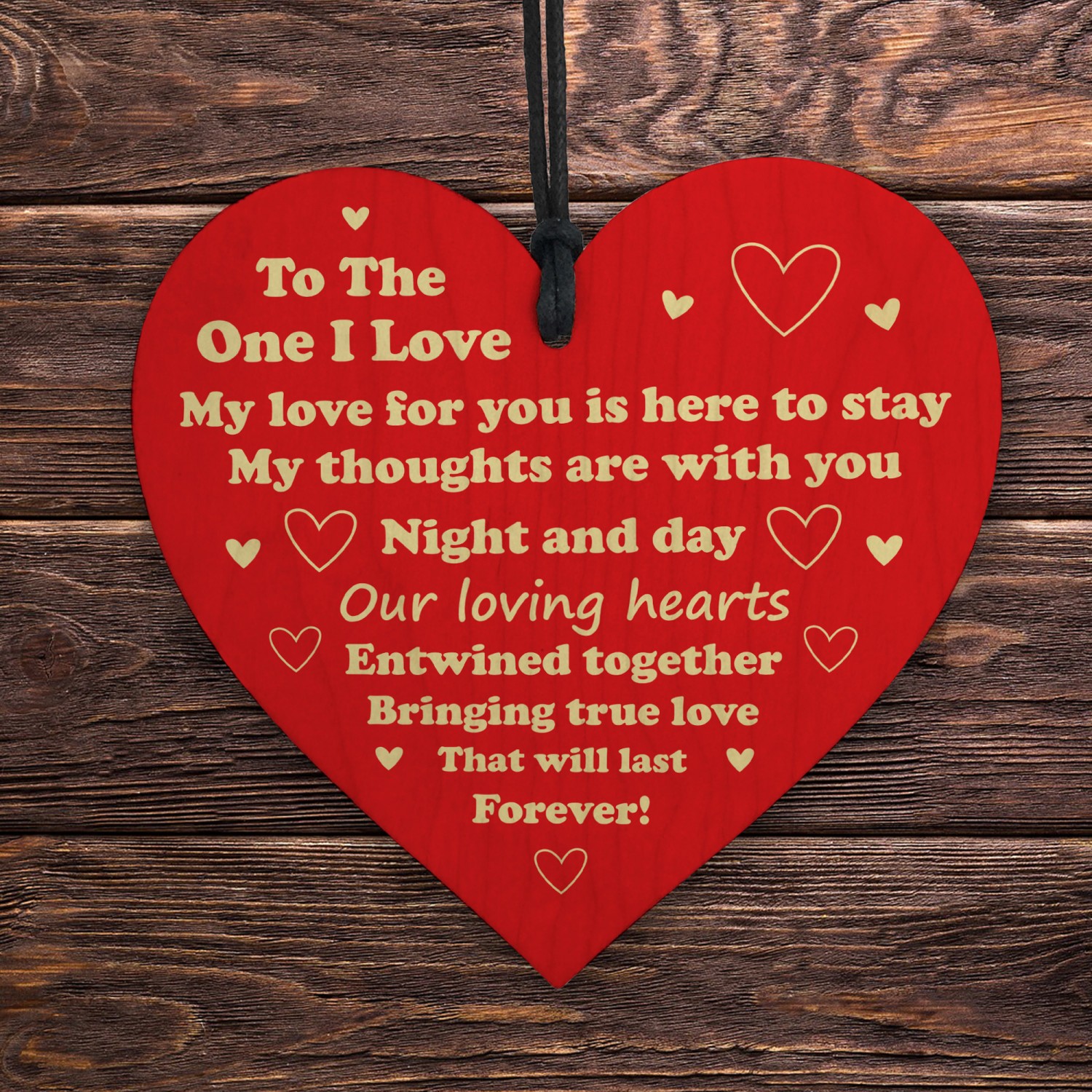 The sign is made from high quality, and the design is permanently printed into the heart. The wooden heart is supplied with waxed cotton rope in both black and red colours to allow easy hanging and looks great in any room of the house.