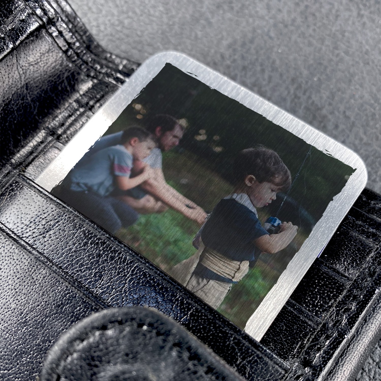 The business card sized metal card is made from high quality aluminium, and the design is permanently printed into the metal using the process of sublimation. The perfect size to fit inside any wallet and will last for years to come!
